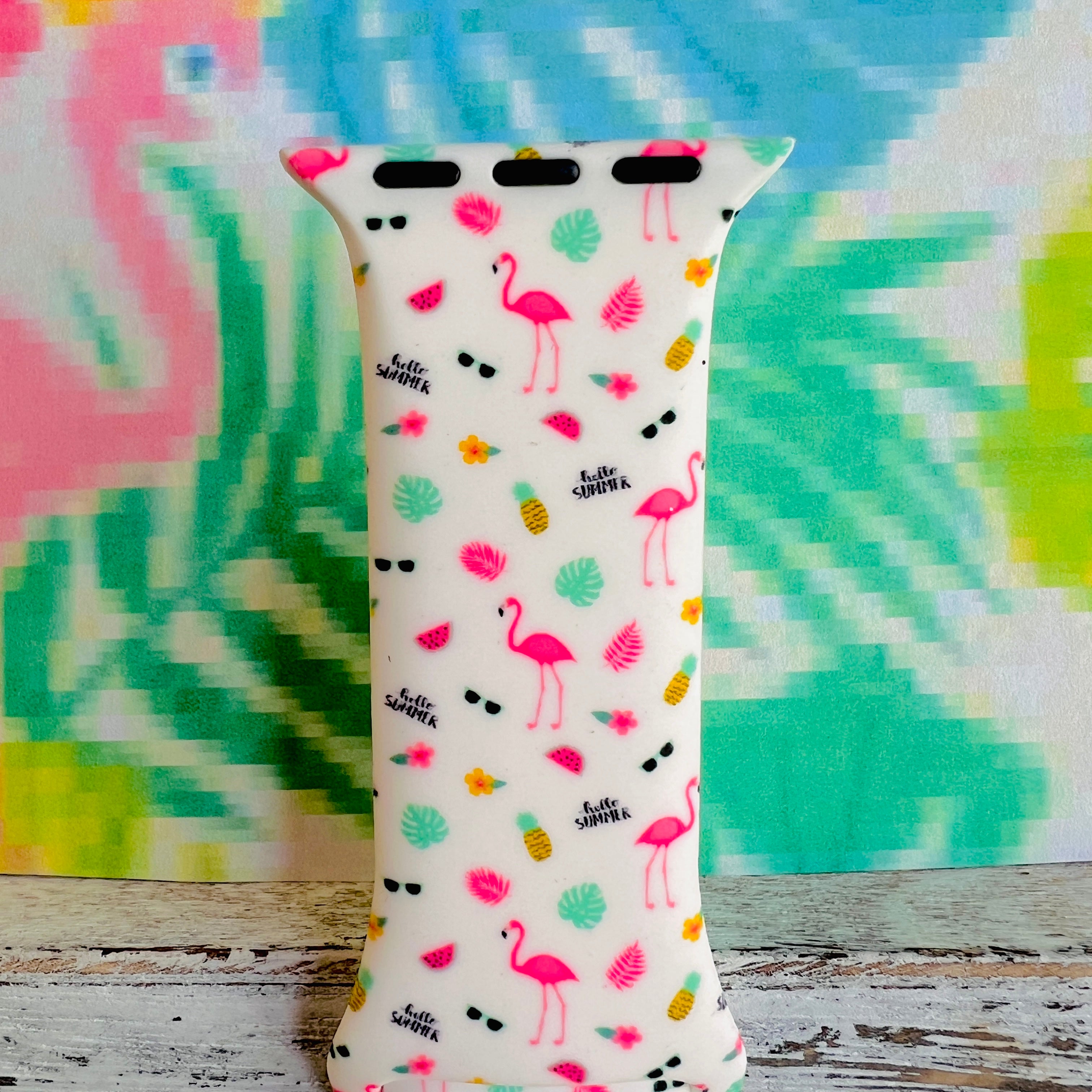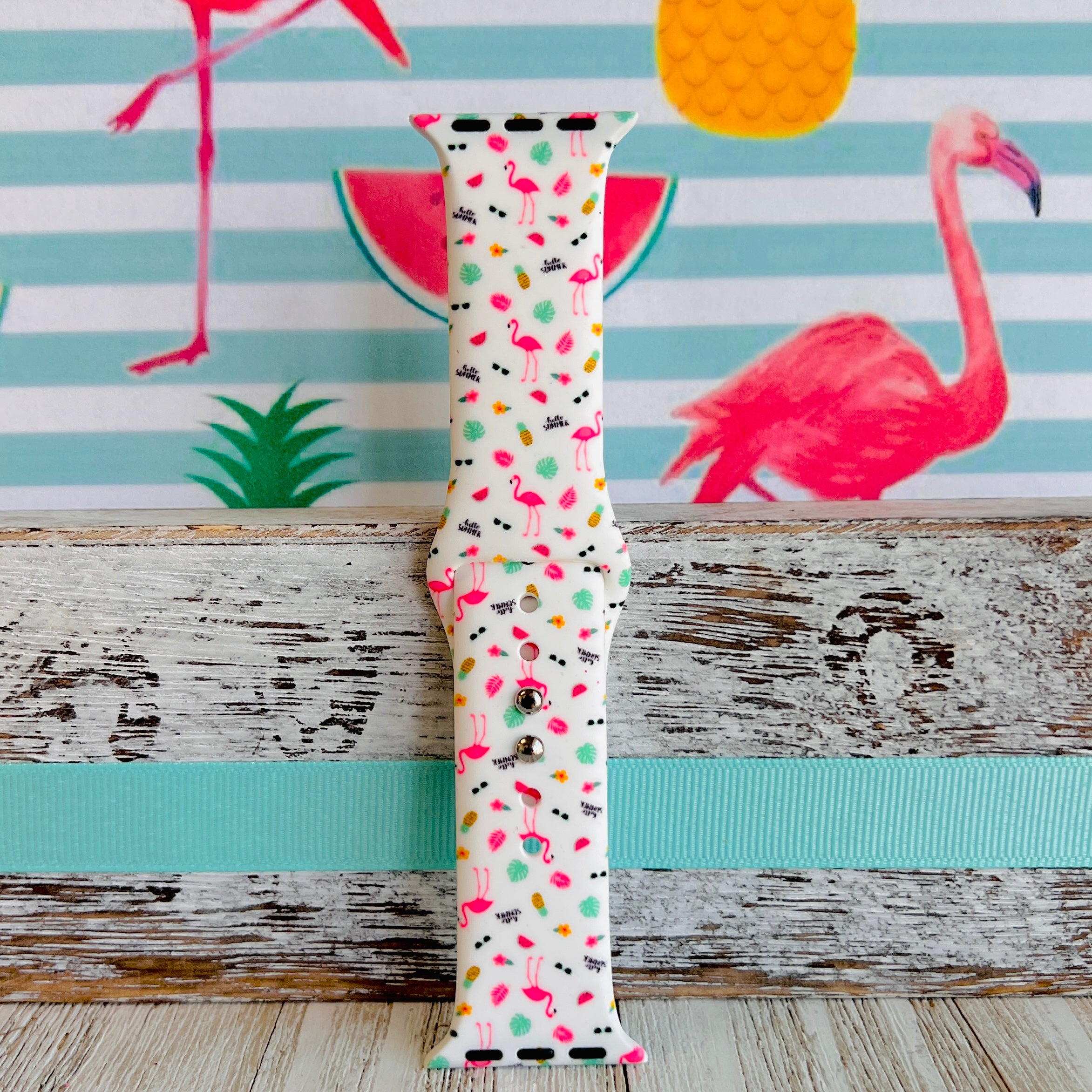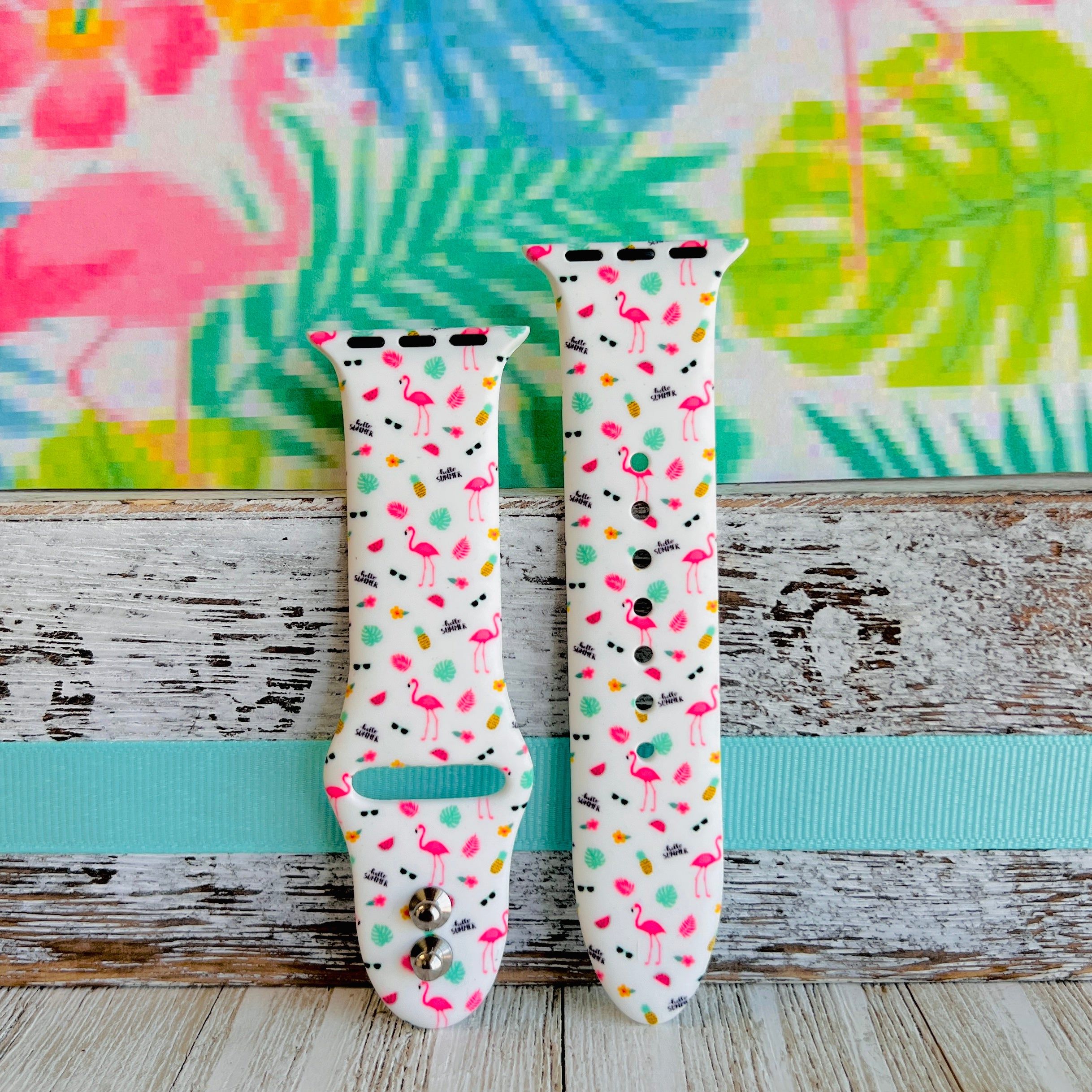 Correa de silicona con estampado de flamencos tropicales para Apple Watch