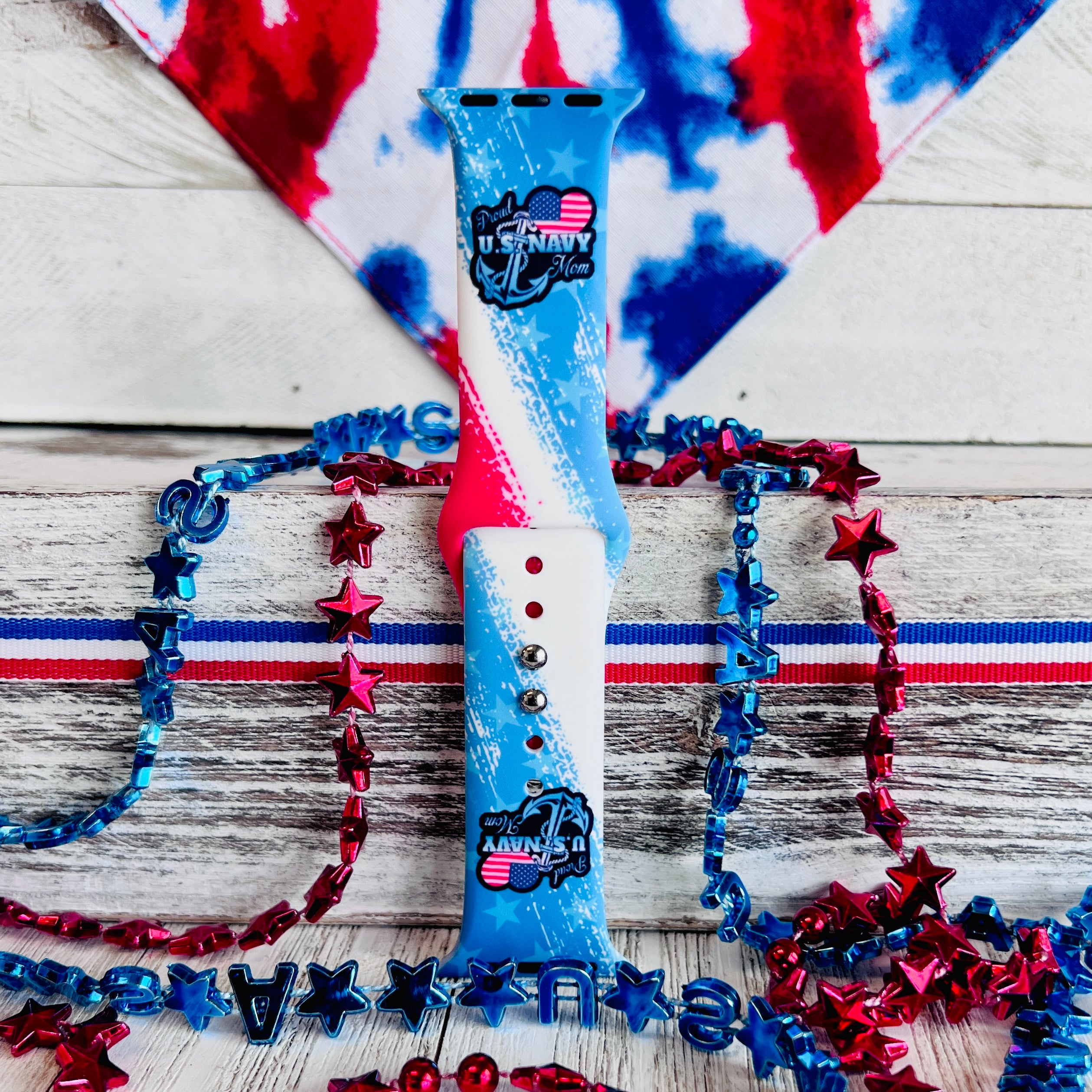 Correa de silicona con estampado de mamá orgullosa de color azul marino para Apple Watch