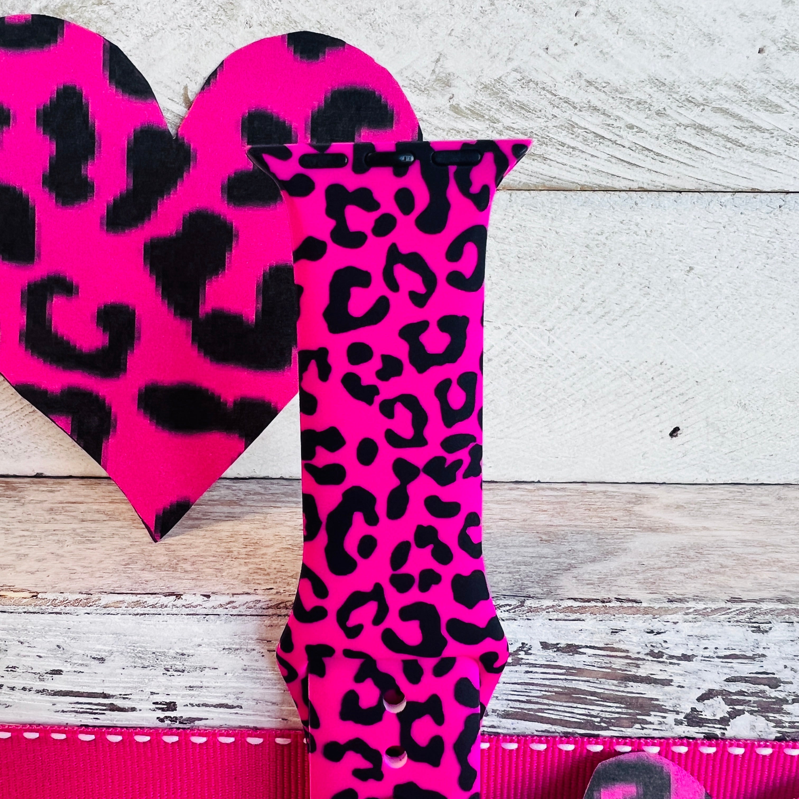 Barbiecore Pink Leopard Print Silicone Band For Apple Watch