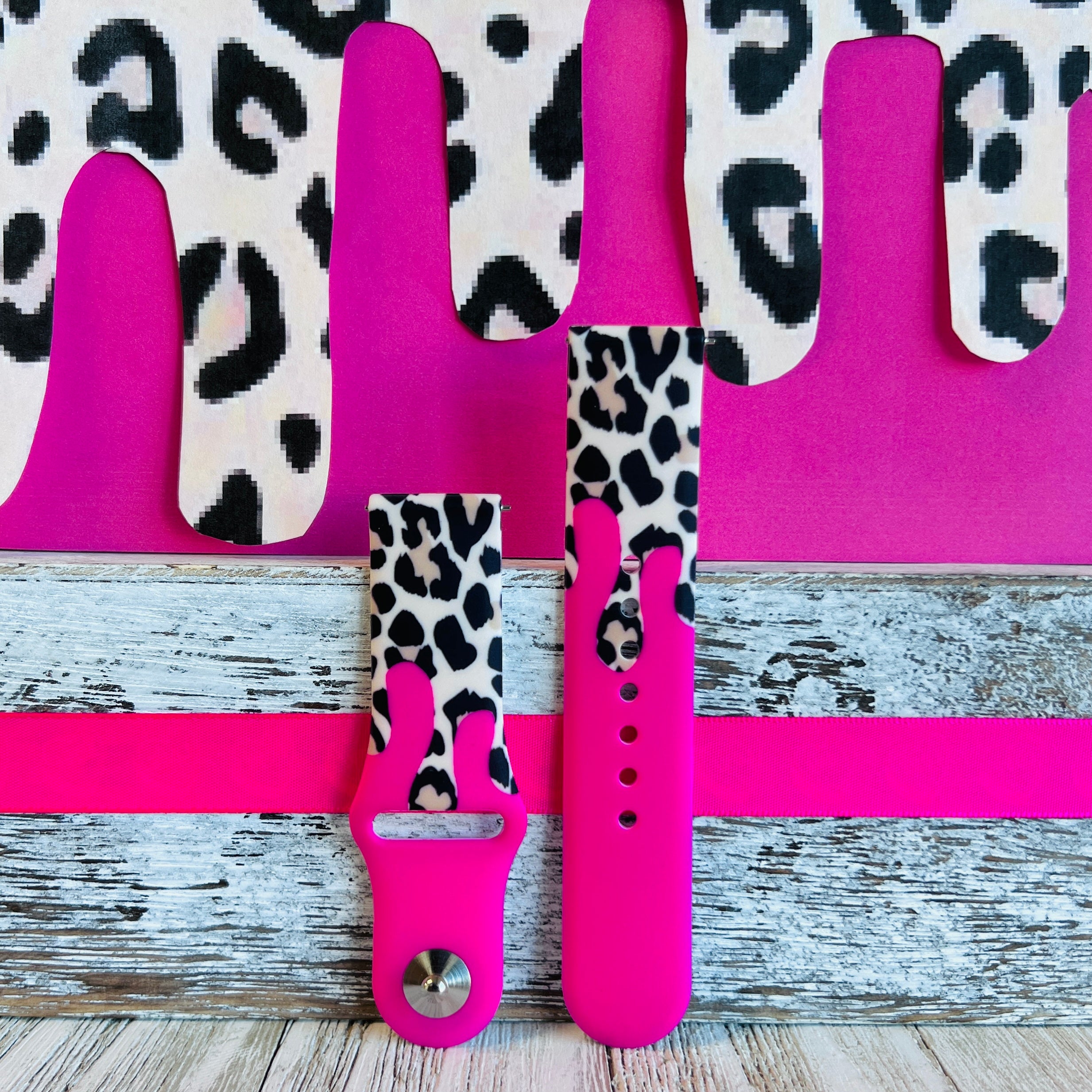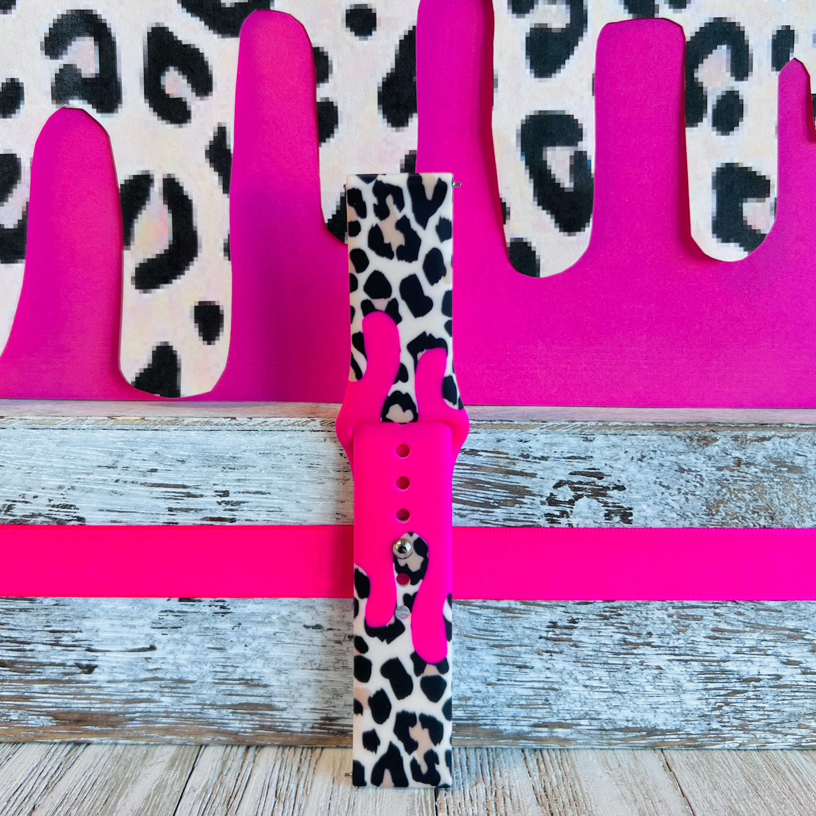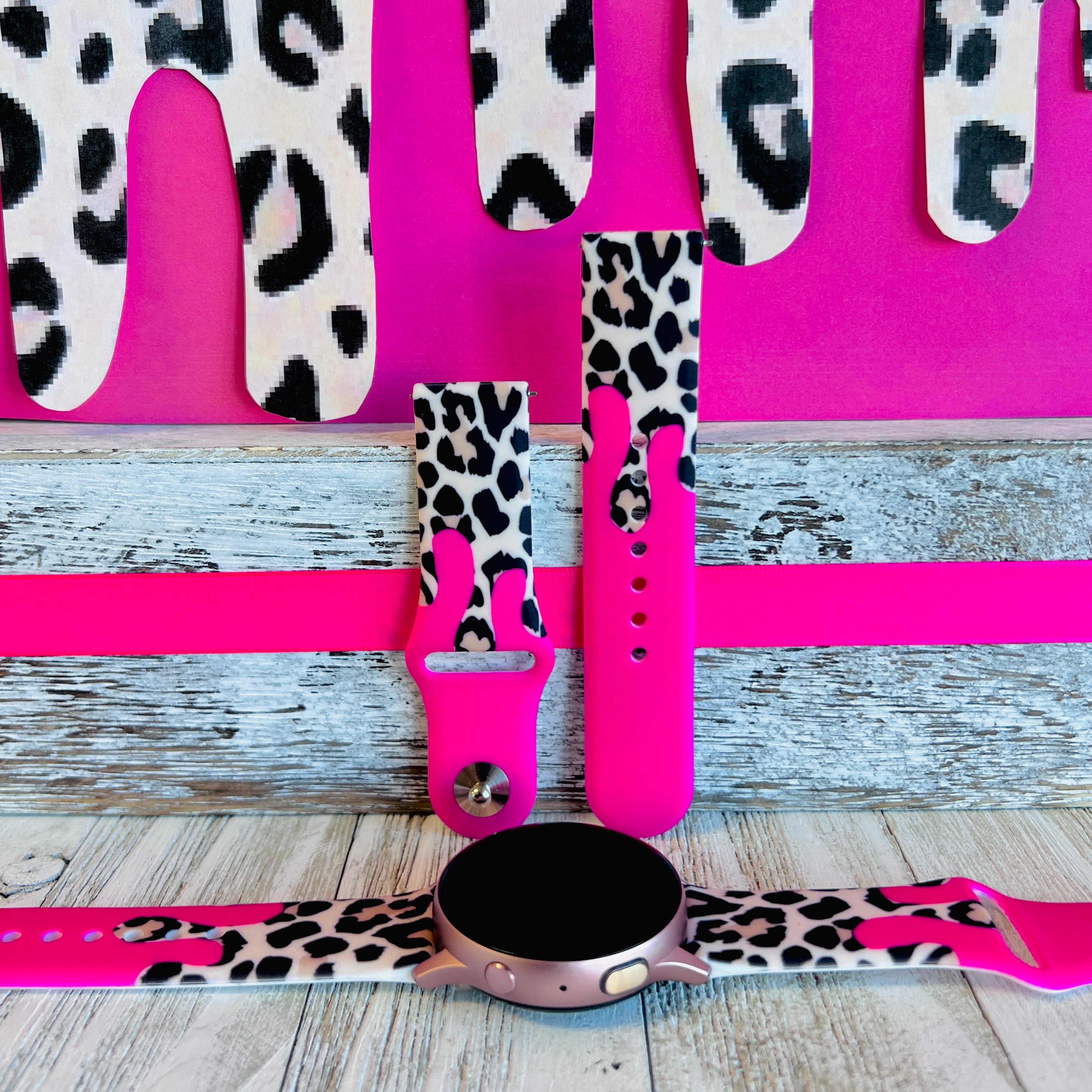 Barbie Pink Leopard Drip Print Silicone Band For Samsung Watch