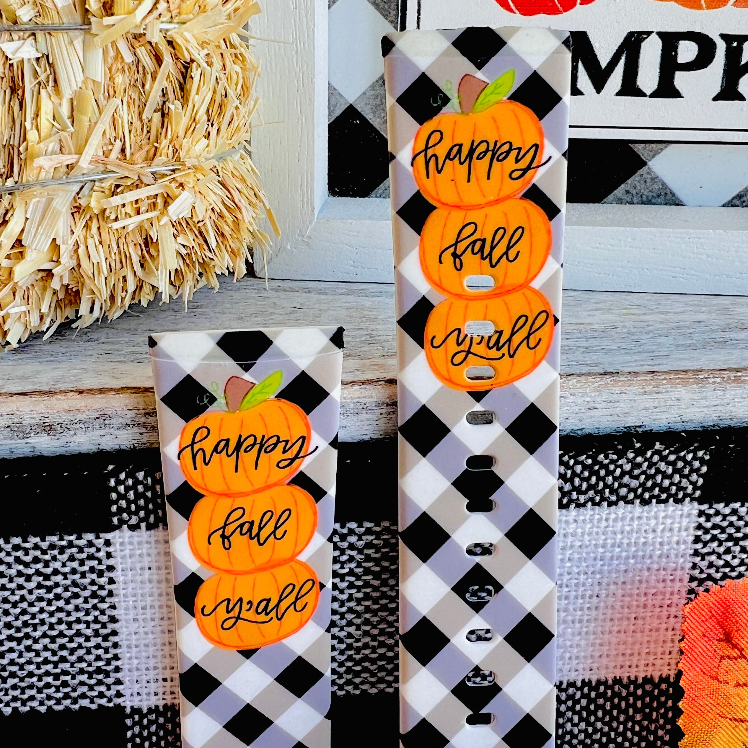 Black Plaid Happy Fall Y'all Print Silicone Band For Fitbit Versa 3/4/Sense