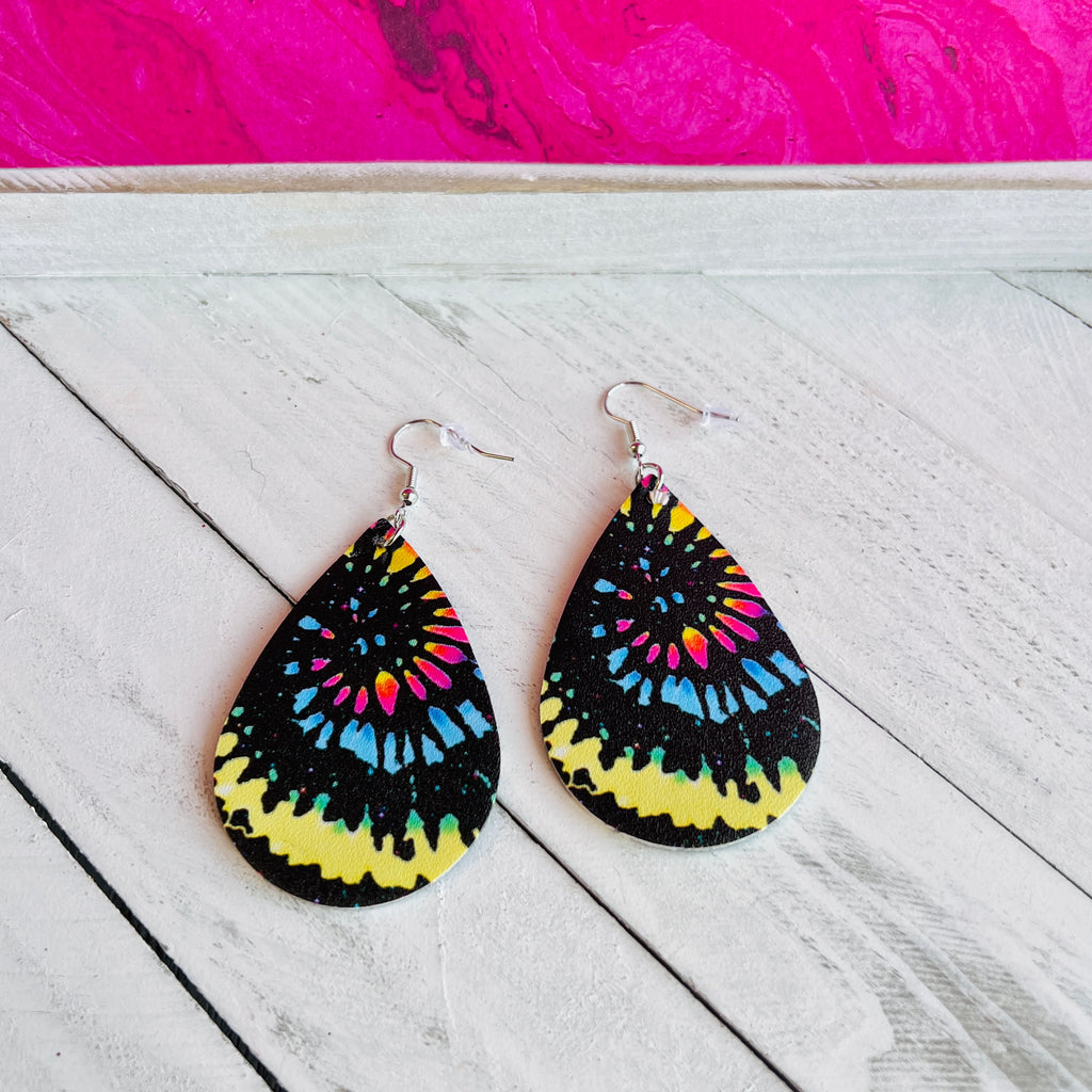 Black Tie Dye Faux Leather Teardrop Ear Bling Two Styles Available