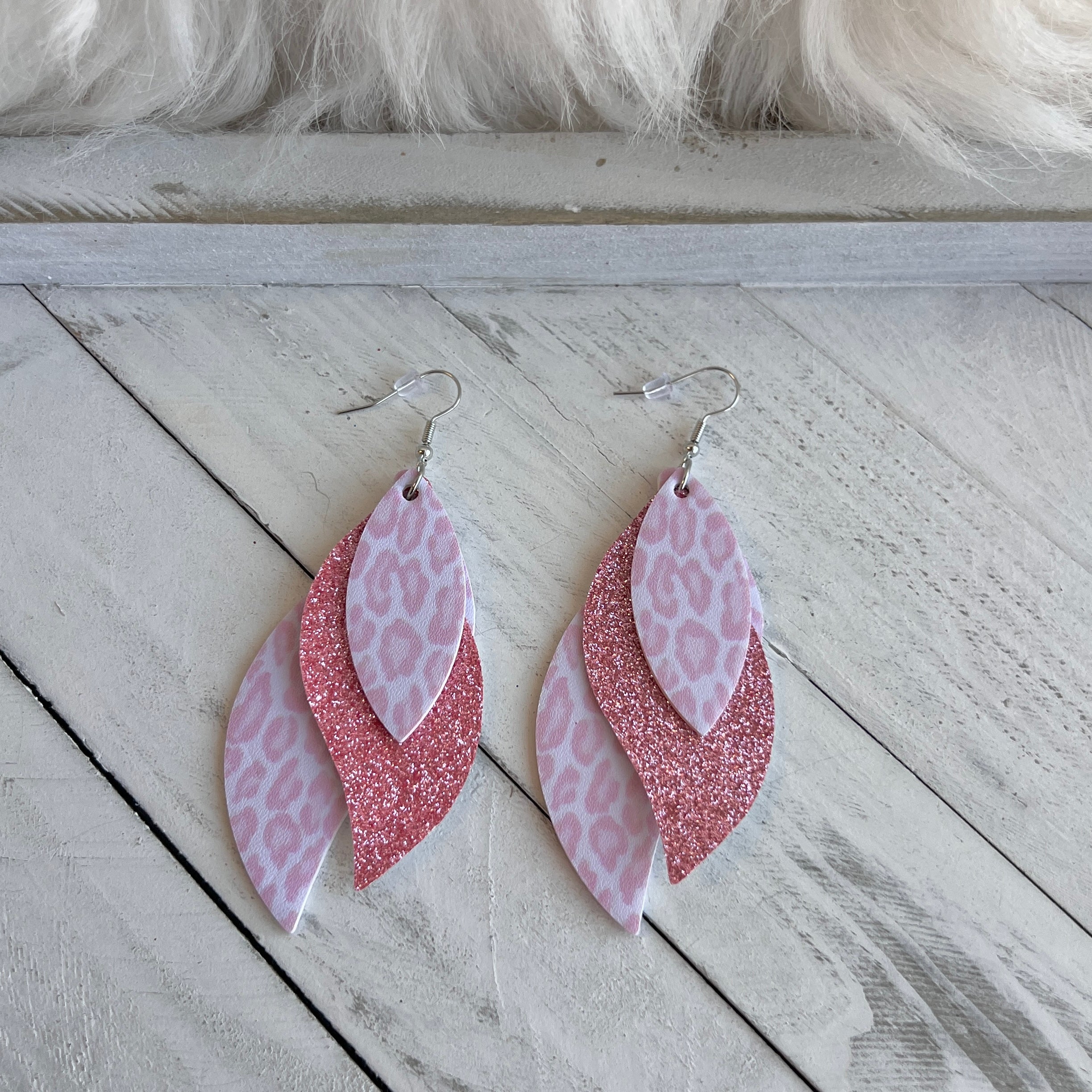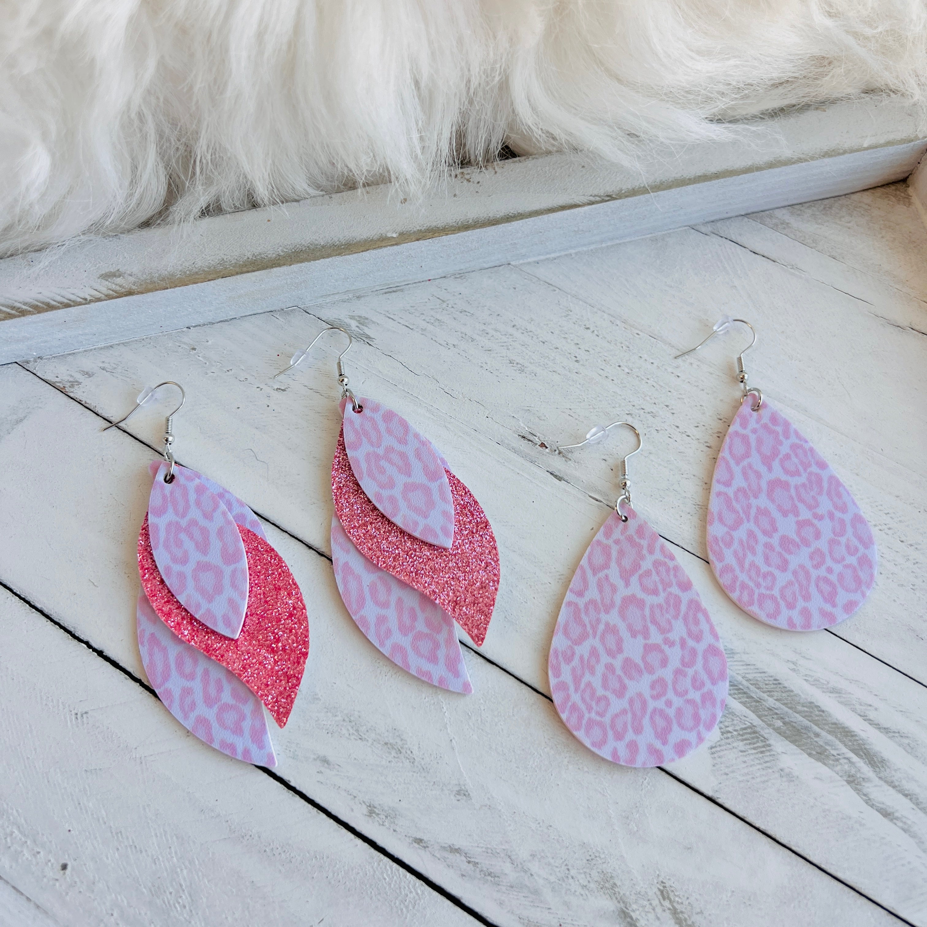 Blush Leopard Faux Leather Teardrop Ear Bling Two Styles Available