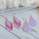 The Triple Layer Faux Leather Drop design showcases three exquisite layers, with a glittery middle insert, measuring 7.5cm/2.9 inches in length and 3.4cm/1.34 inches in width.