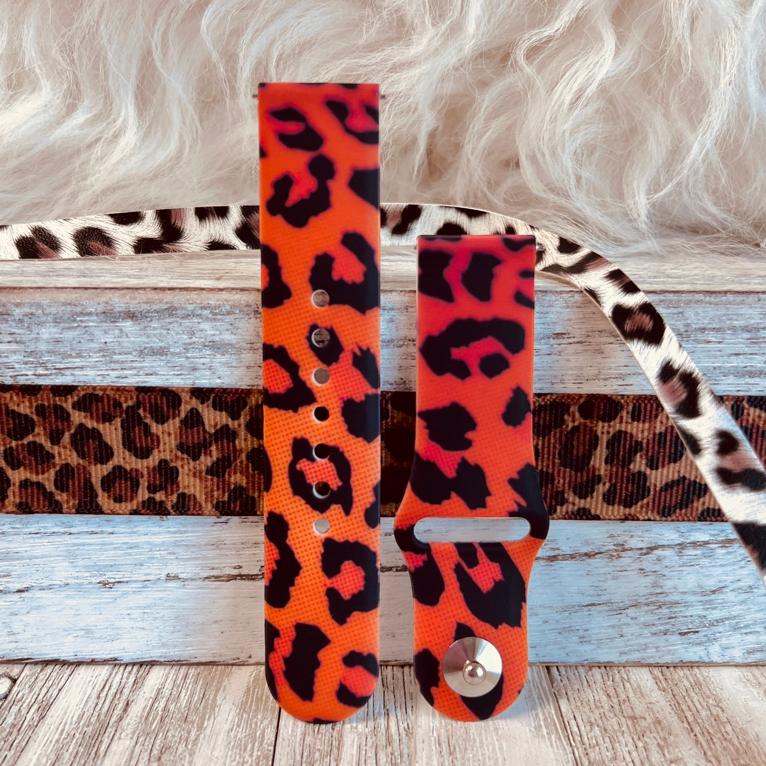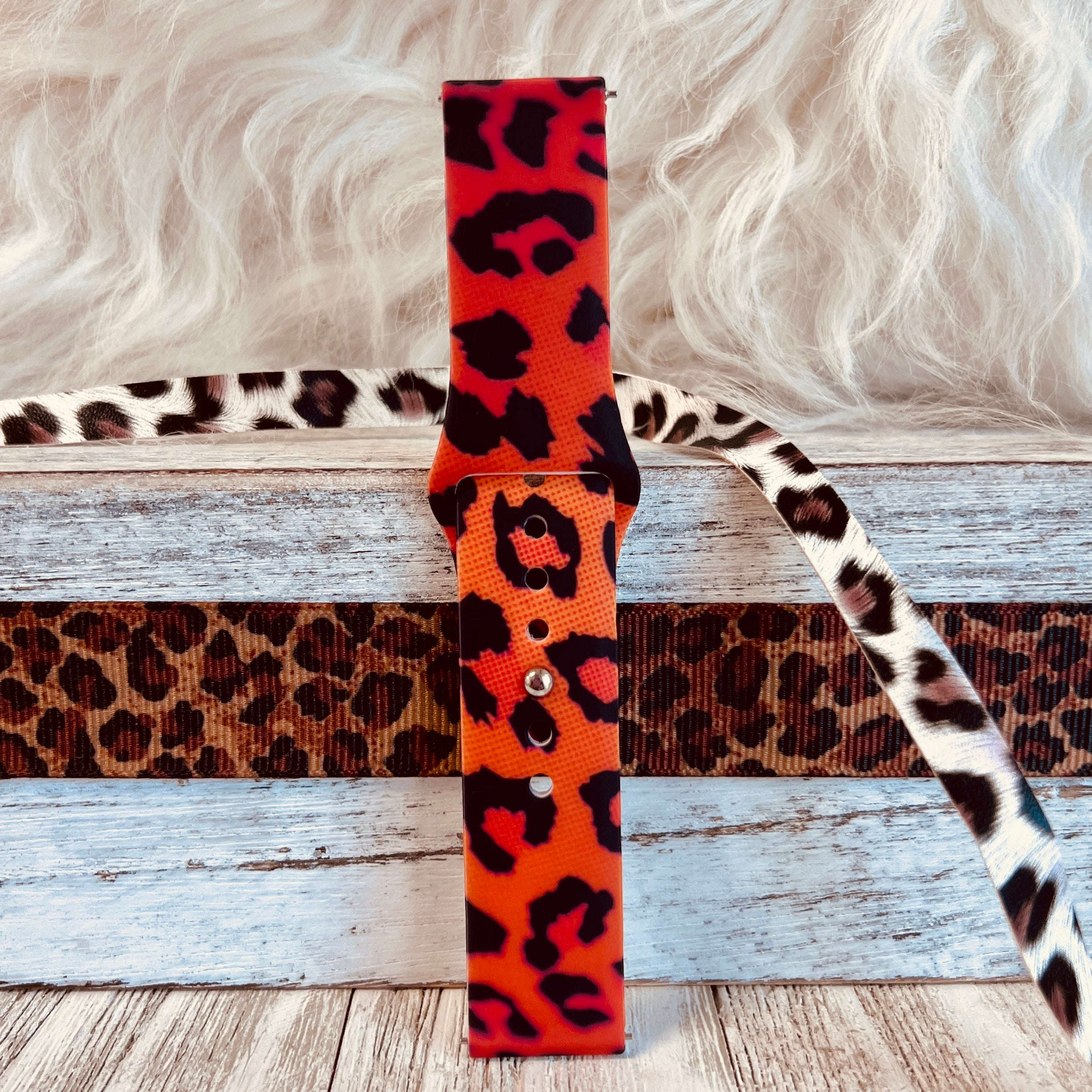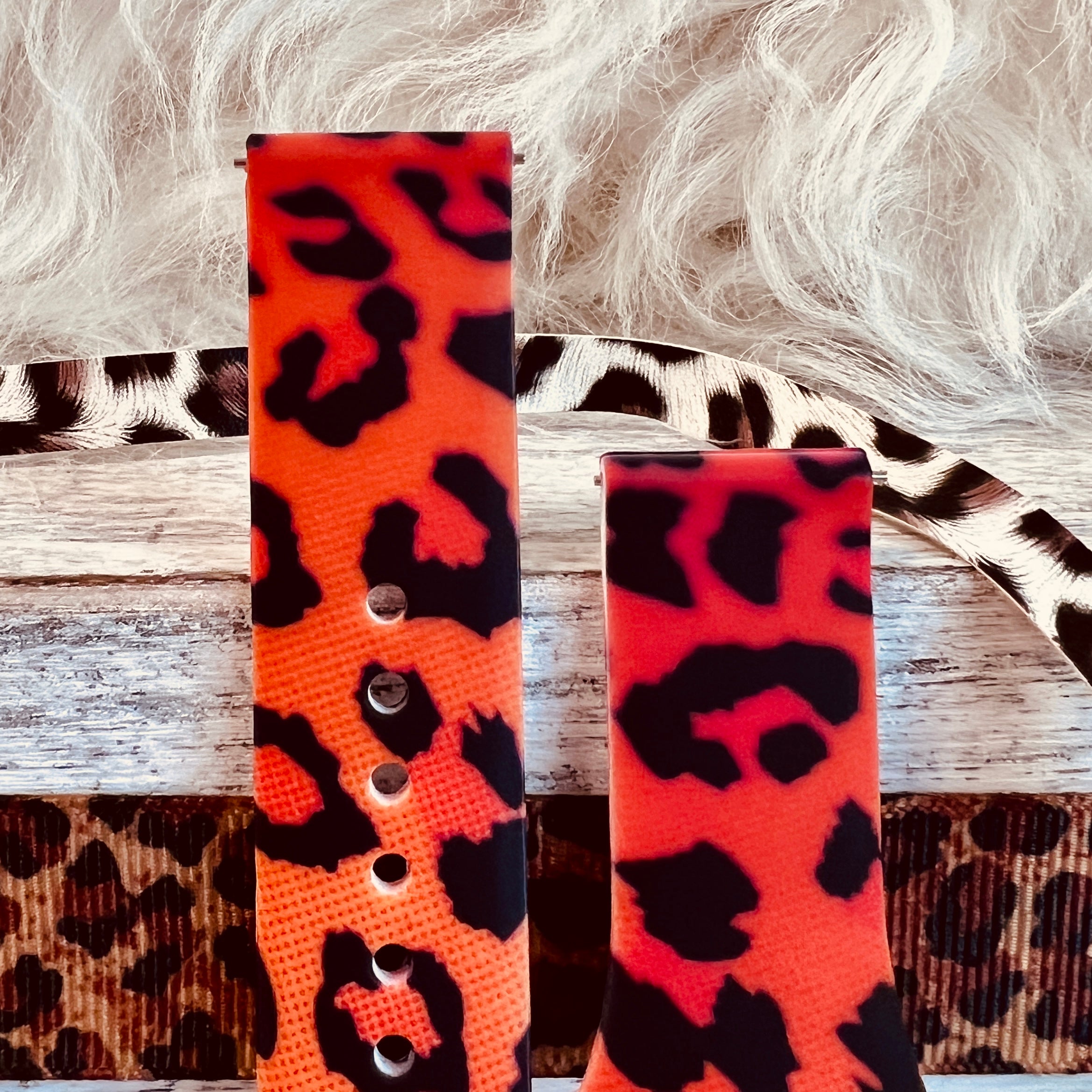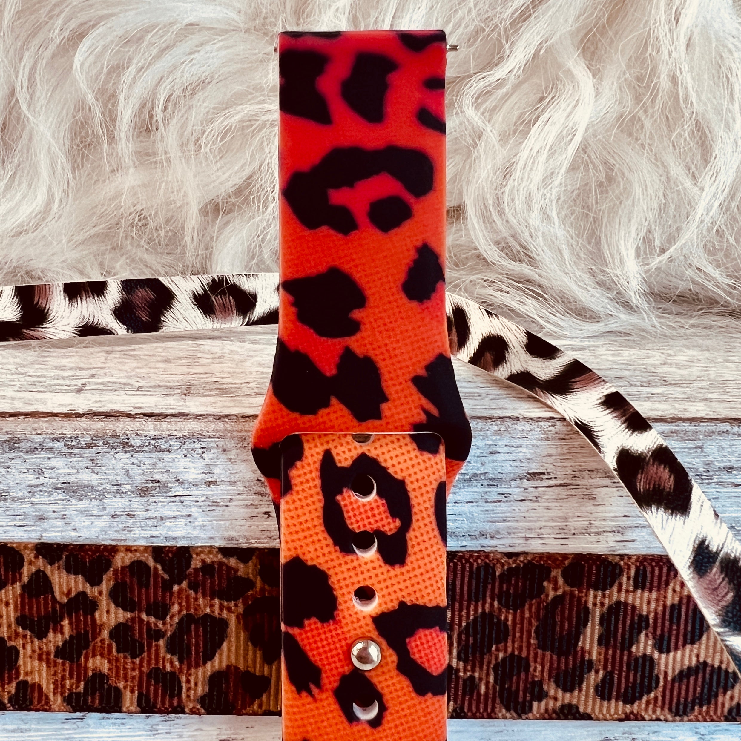 Burnt Orange Leopard Print Silicone Band For Samsung Watch