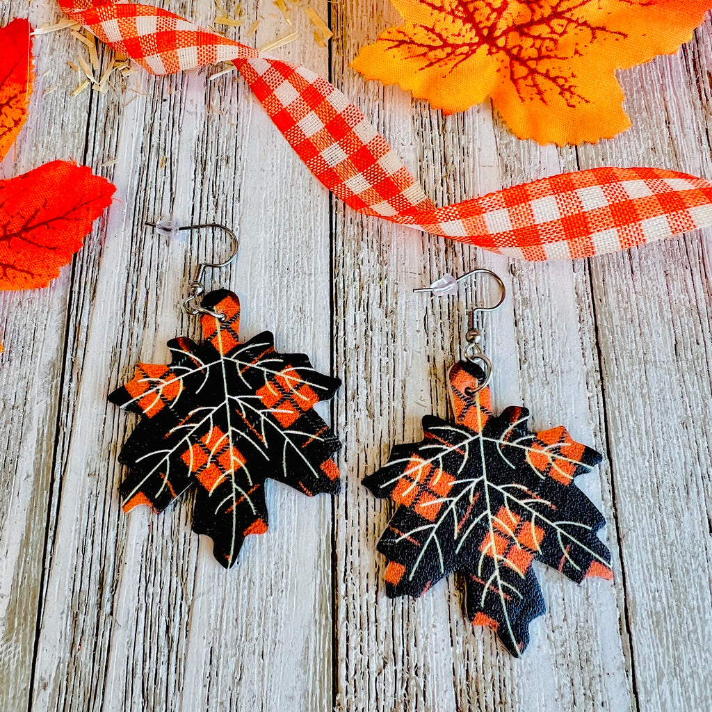 Fall Argyle Shaped Faux Leather Drop Ear Bling