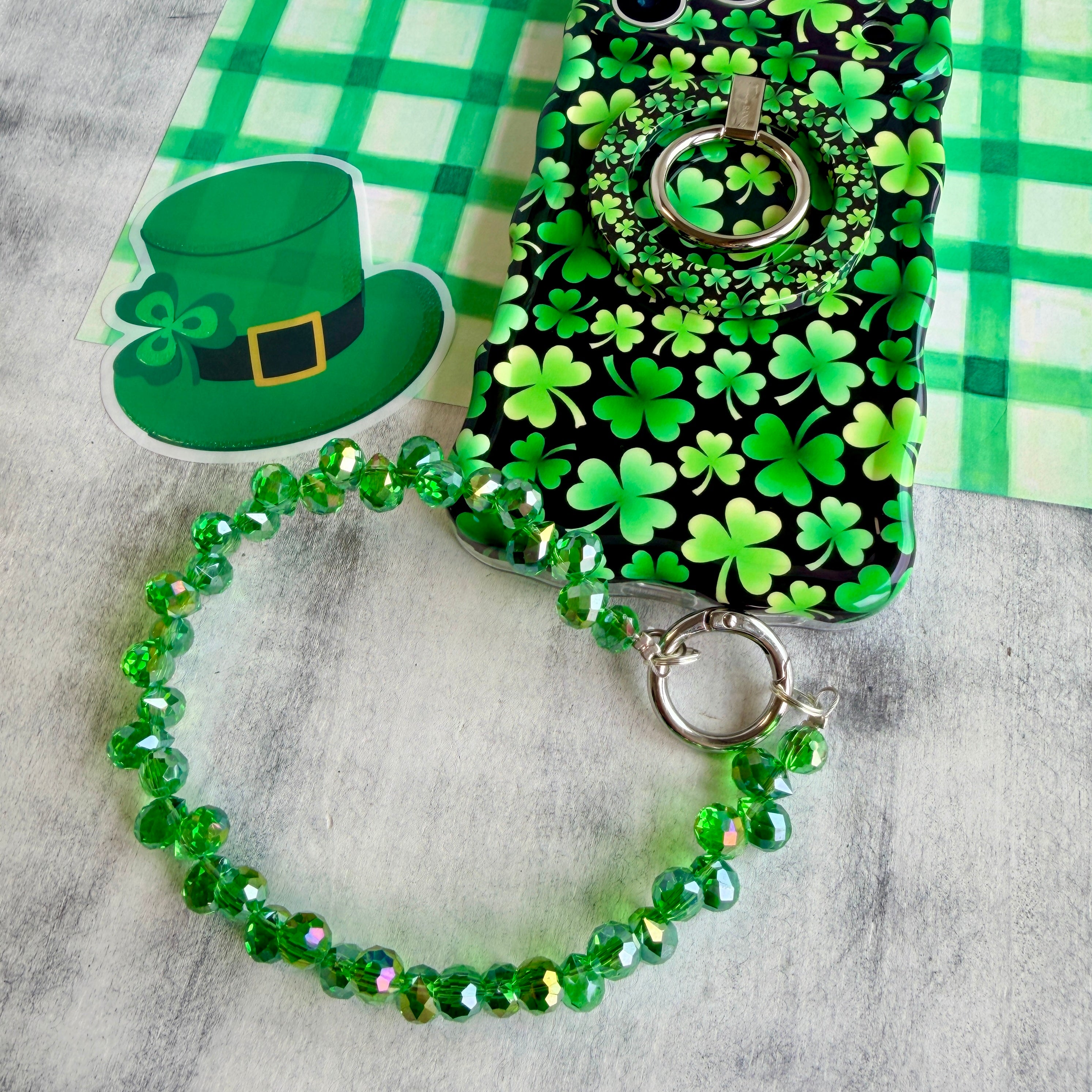 Green with Envy Phone Charm - Emerald Beaded Phone Wrist Strap
