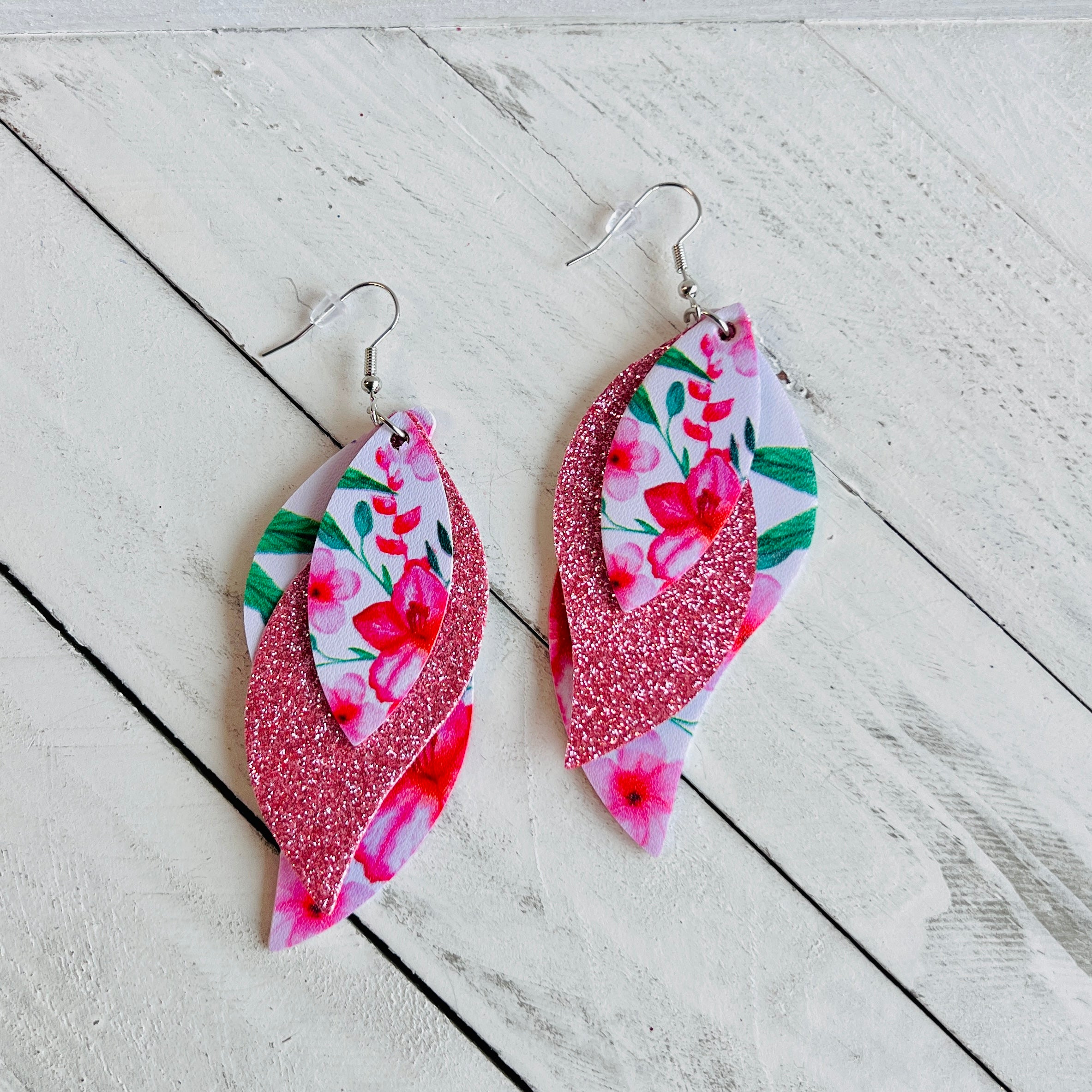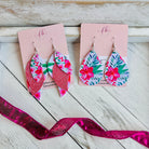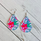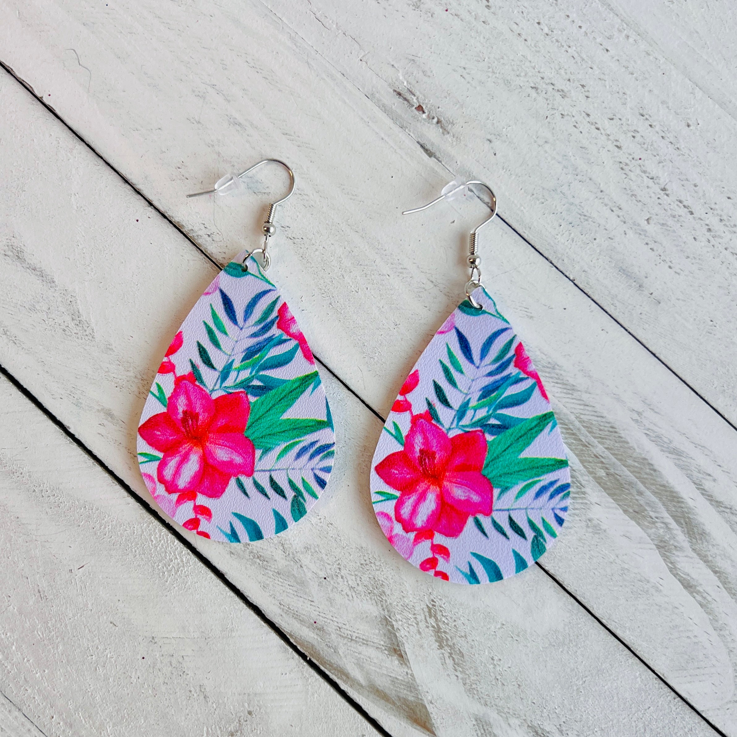 Hawaiian Floral Faux Leather Teardrop Ear Bling Two Styles Available