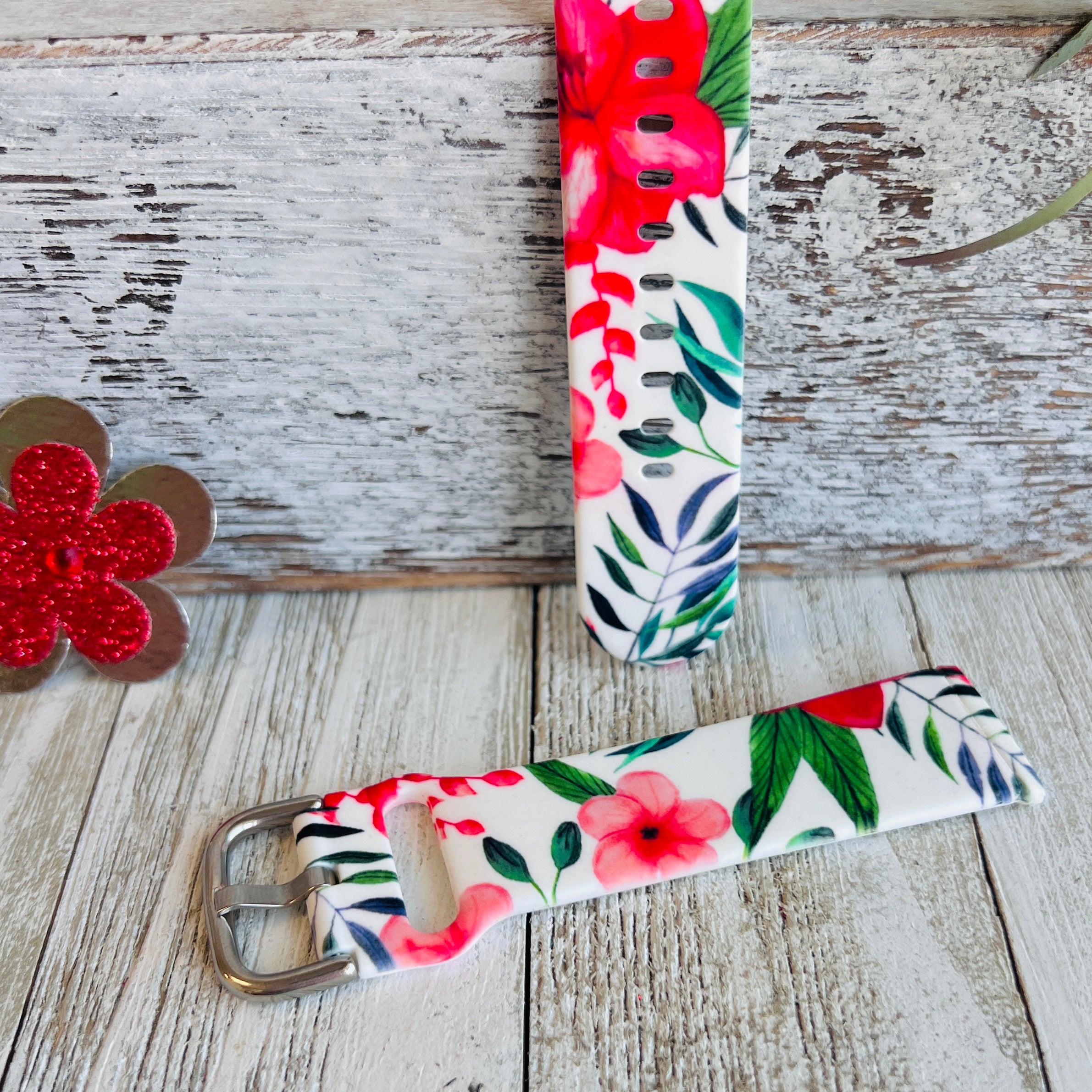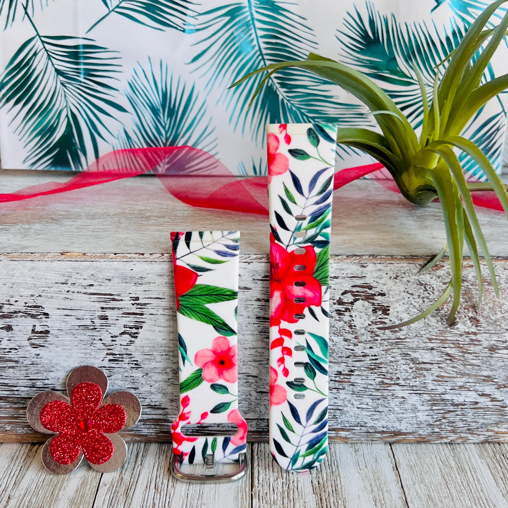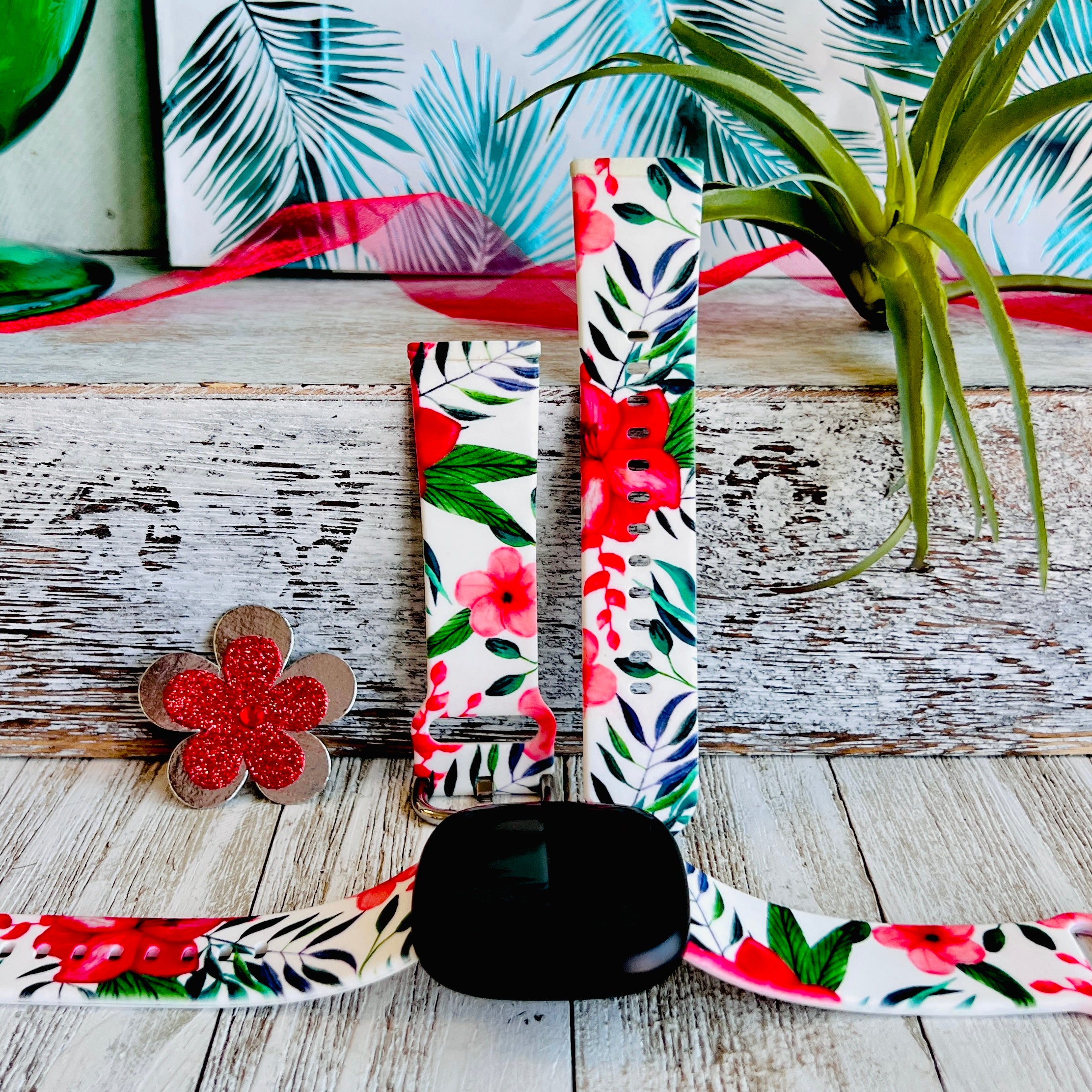 Hawaiian Floral Print Silicone Band For Fitbit Versa 3/4/Sense