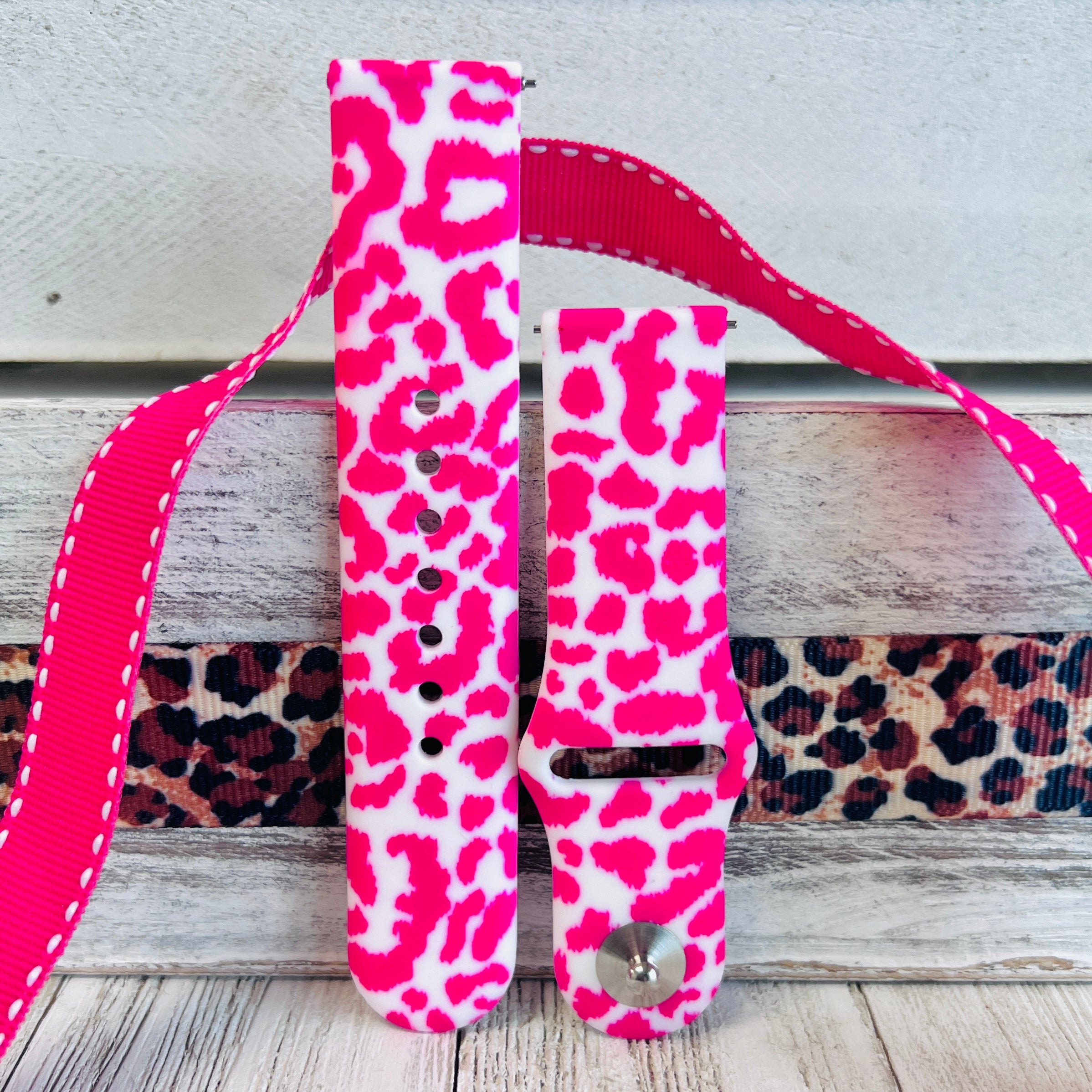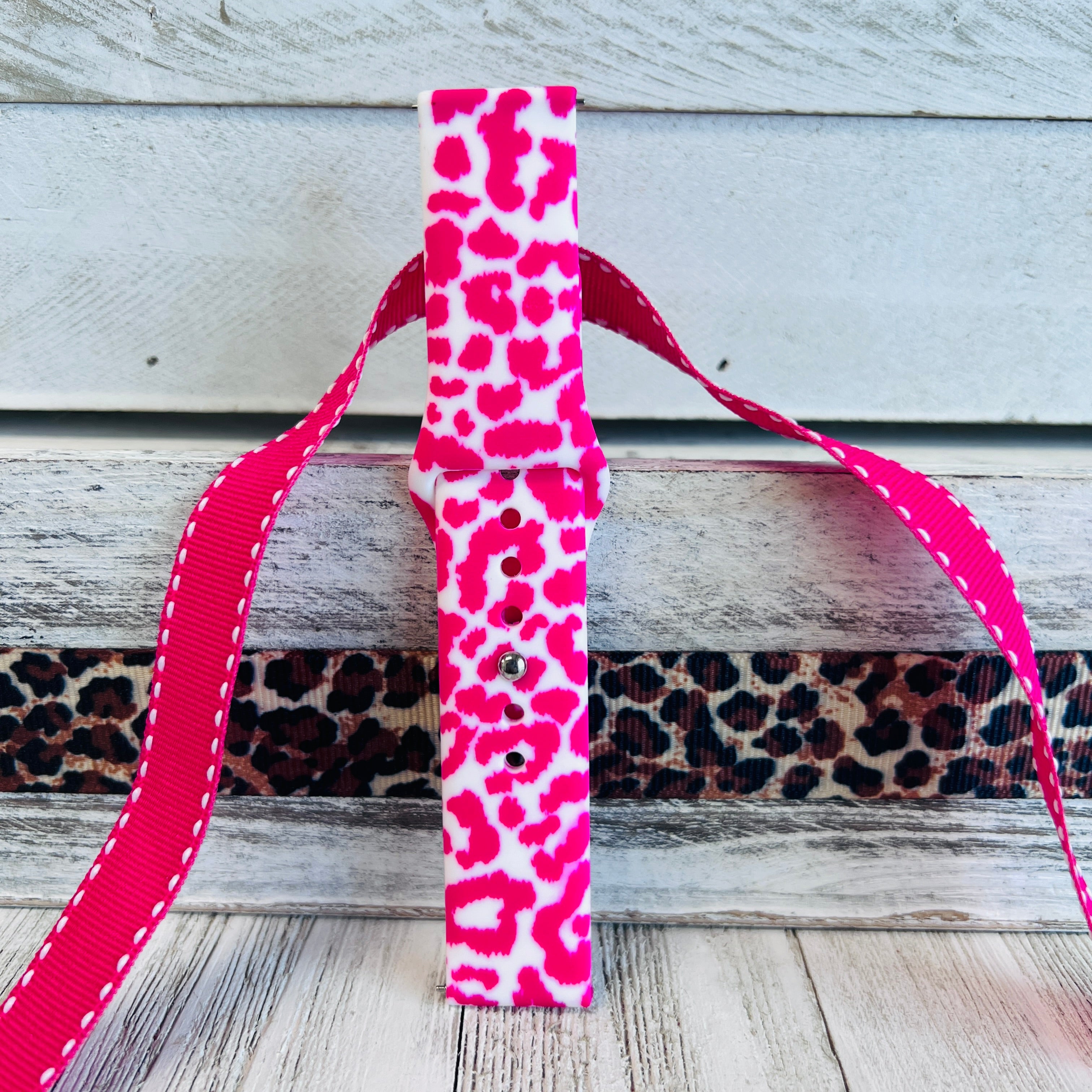 Hot Pink Leopard Print Silicone Band For Samsung Watch