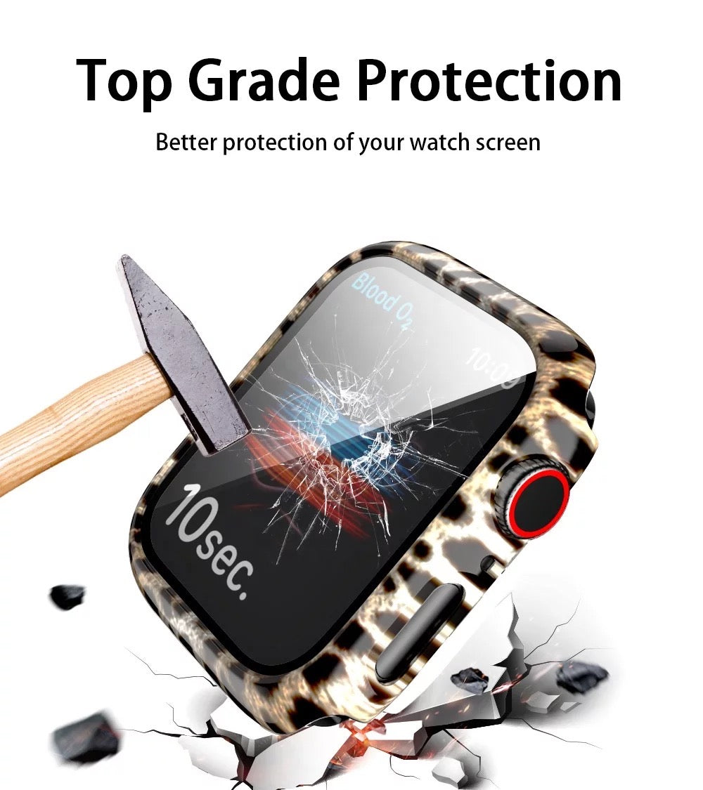 Printed Hard Case With Tempered Glass Screen Protector For Apple Watch Multiple Colors Available