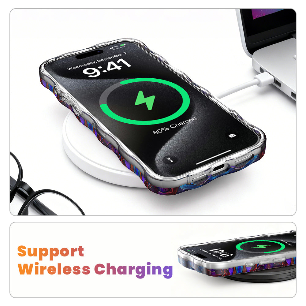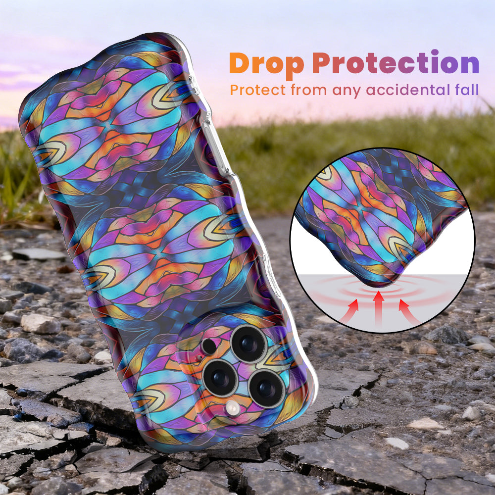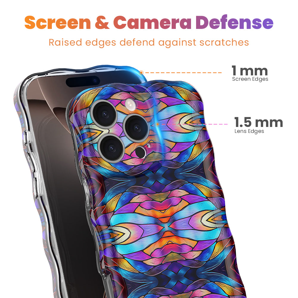 - 🌊 Signature Wavy Luxe Design — The sculpted, curvy border adds a modern, fluid silhouette that complements the geometric art while providing an ergonomic, non-slip grip that keeps your phone secure.