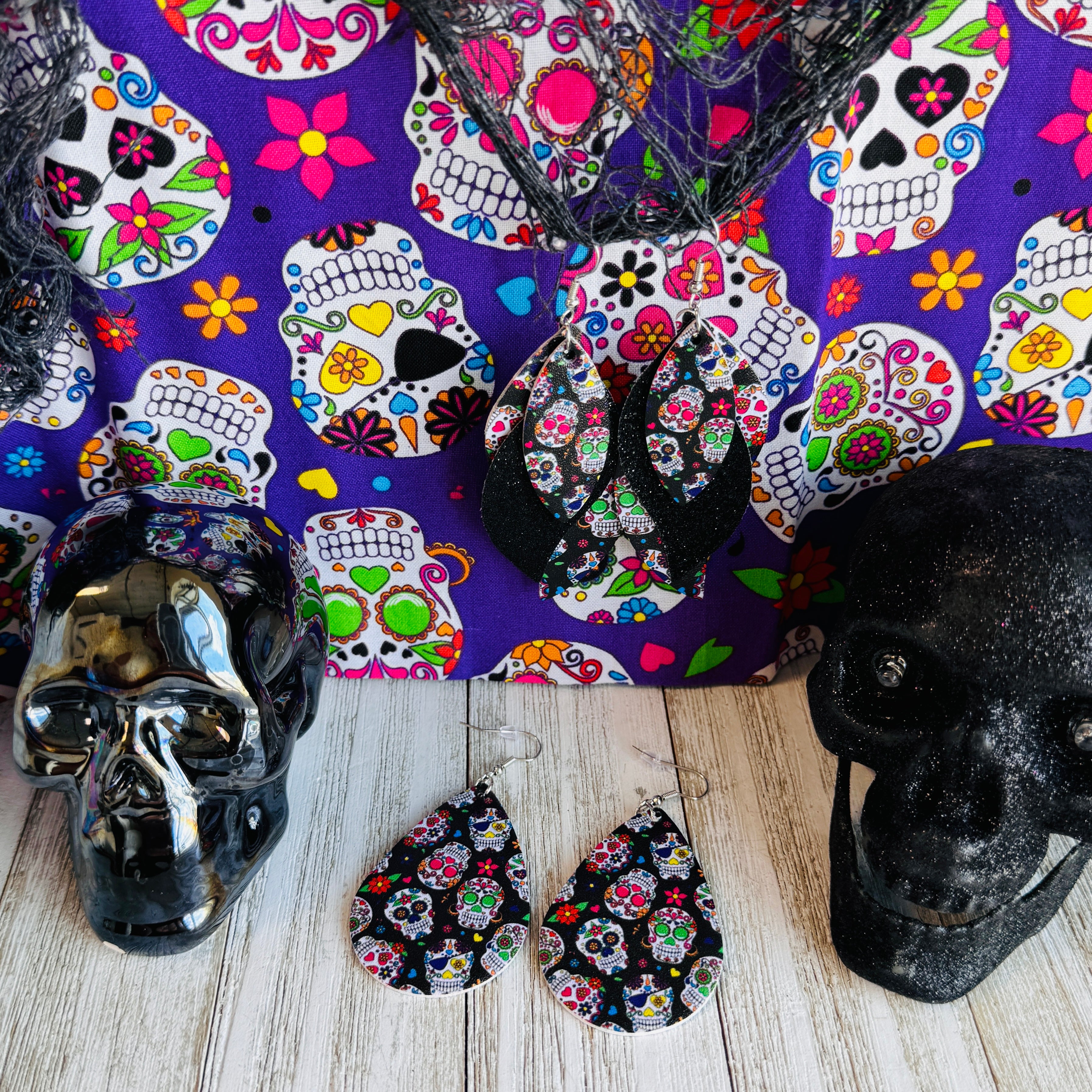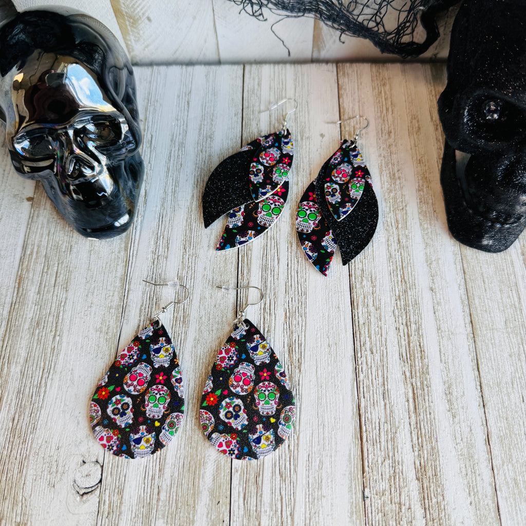 Sugar Skull Faux Leather Teardrop Ear Bling Two Styles Available